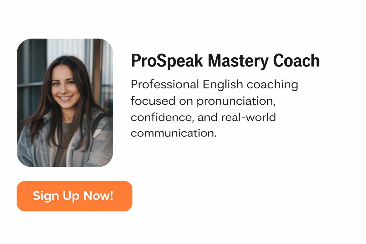 ProSpeak Mastery specializes in helping professionals communicate clearly and confidently in English at work, in interviews, and in real-life conversations. Our coaching focuses on clarity, confidence, and real-world results.